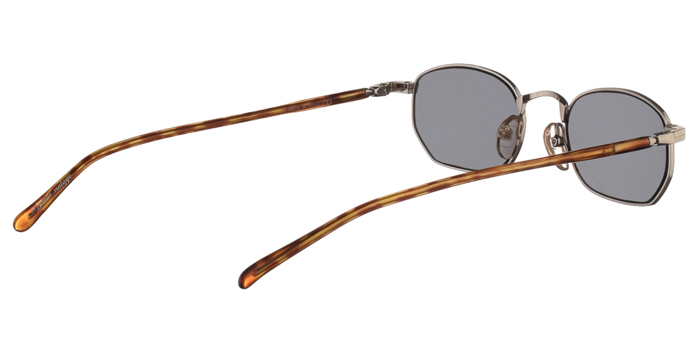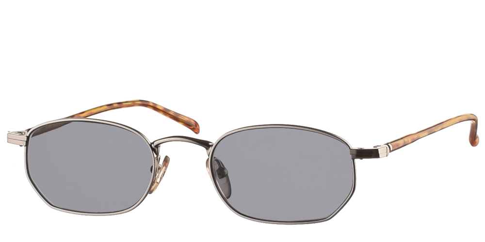 Μεταλλικά unisex γυαλιά ηλίου 3173 σε ασημί σκελετό με βραχίονες σε ανοιχτόχρωμη ταρταρούγα και σκούρους γκρι μπλε φακούς της εταιρίας Original Vintage για μικρά και μεσαία πρόσωπα.