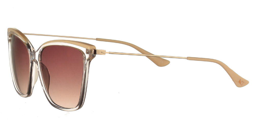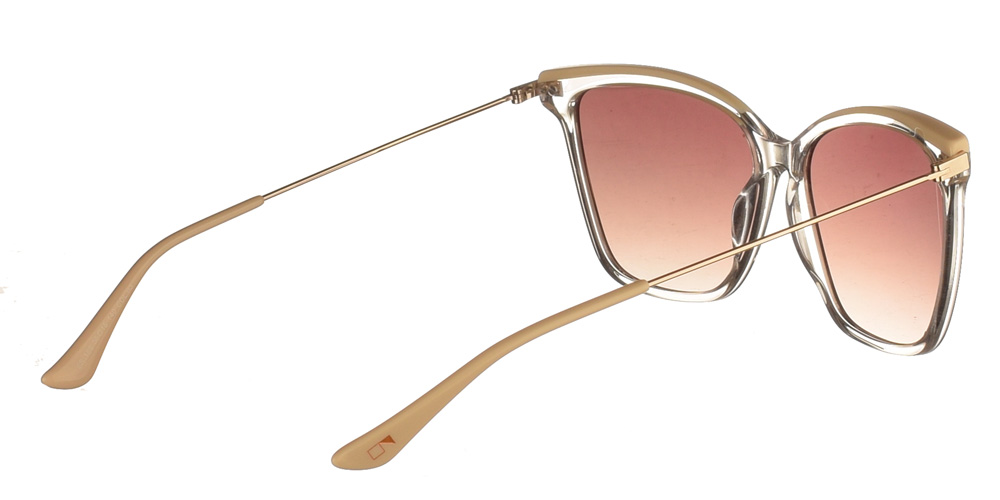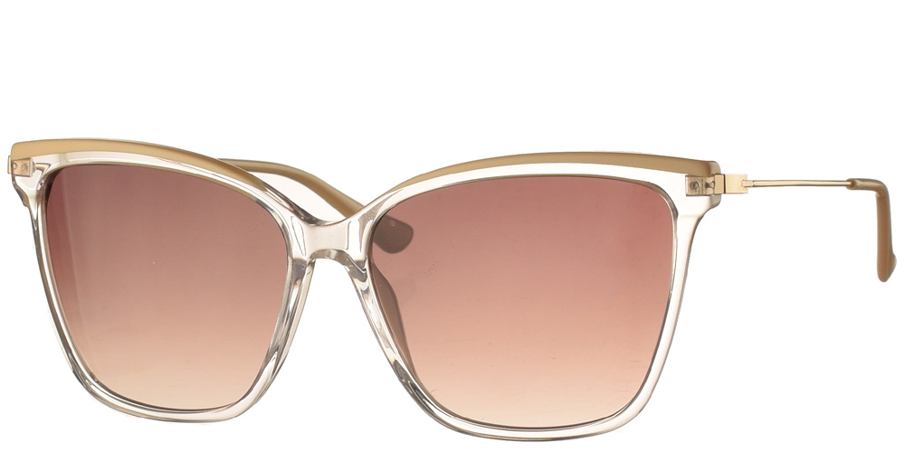 Τετράγωνα πεταλούδα γυναικεία κοκάλινα γυαλιά ηλίου BS188 03 διάφανα με μπέζ και χρυσούς βραχίονες και καφέ ντεγκραντέ φακούς της εταιρίας Glass of Brixton κατάλληλα για μικρά και μεσαία πρόσωπα.