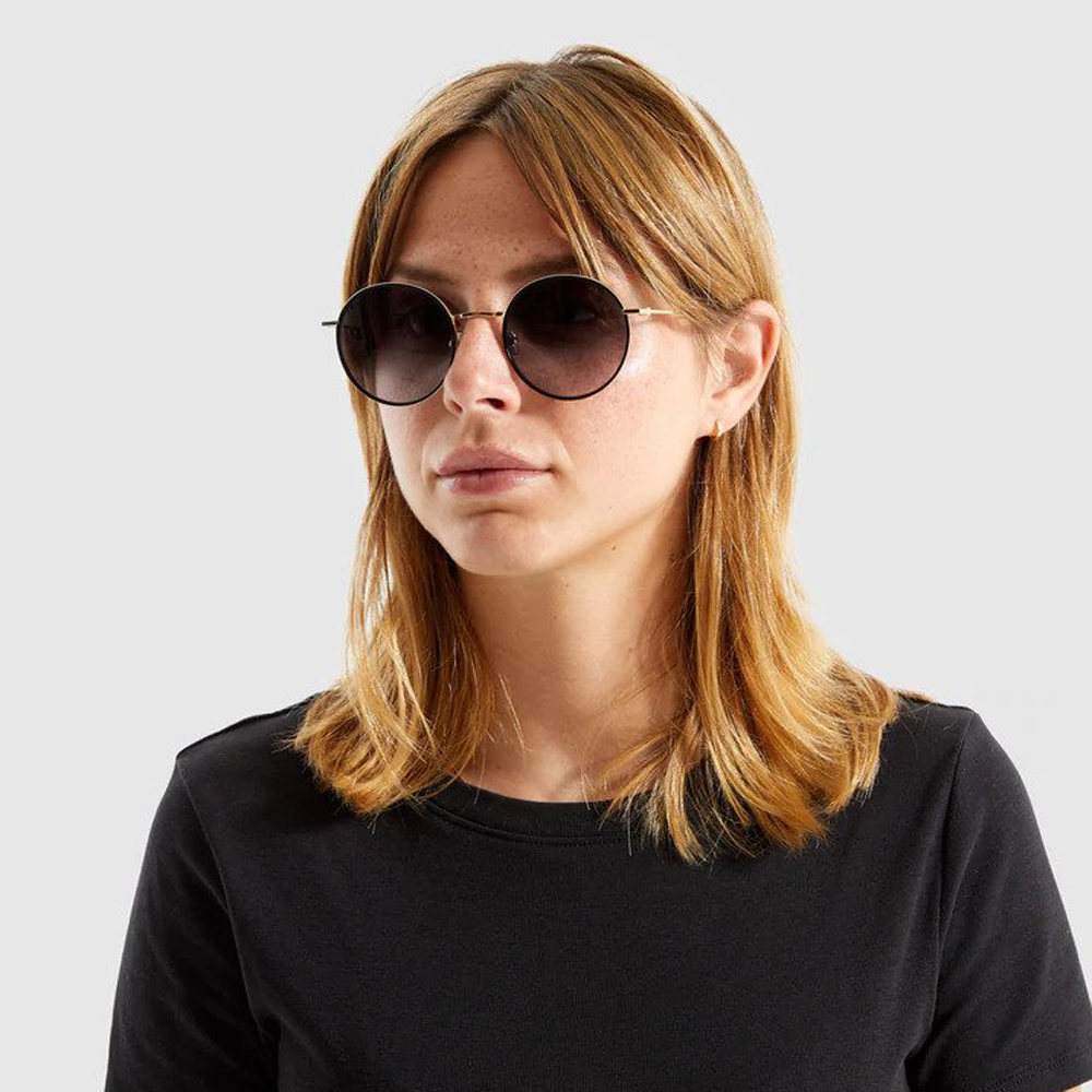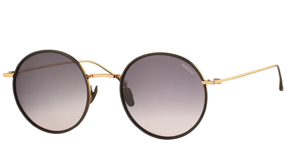 Μεταλλικά ανδρικά και γυναικεία γυαλιά ηλίου στρογγυλά Yoko Gold Black μαύρα με χρυσό και γκρι ντεγκραντέ φακούς της εταιρίας Komono πιο κατάλληλα για μεσαία και μεγάλα πρόσωπα.