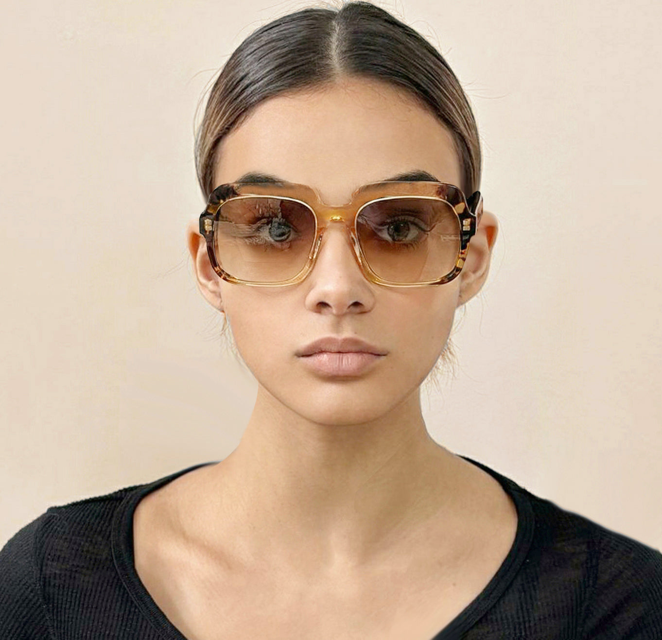 Κοκάλινα γυναικεία τετράγωνα γυαλιά ηλίου Β2334 μαύρα με γκρί ανοιχτούς polarized ντεγκραντε φακούς της εταιρίας Invu κατάλληλα για μεσαία και μεγάλα πρόσωπα.